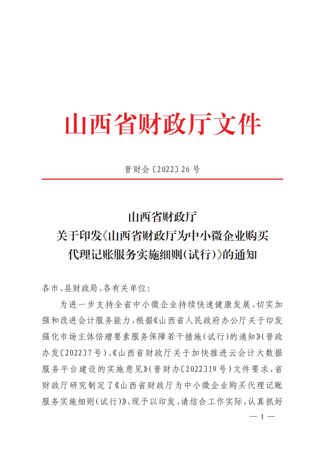 晉財會〔2022〕26 號